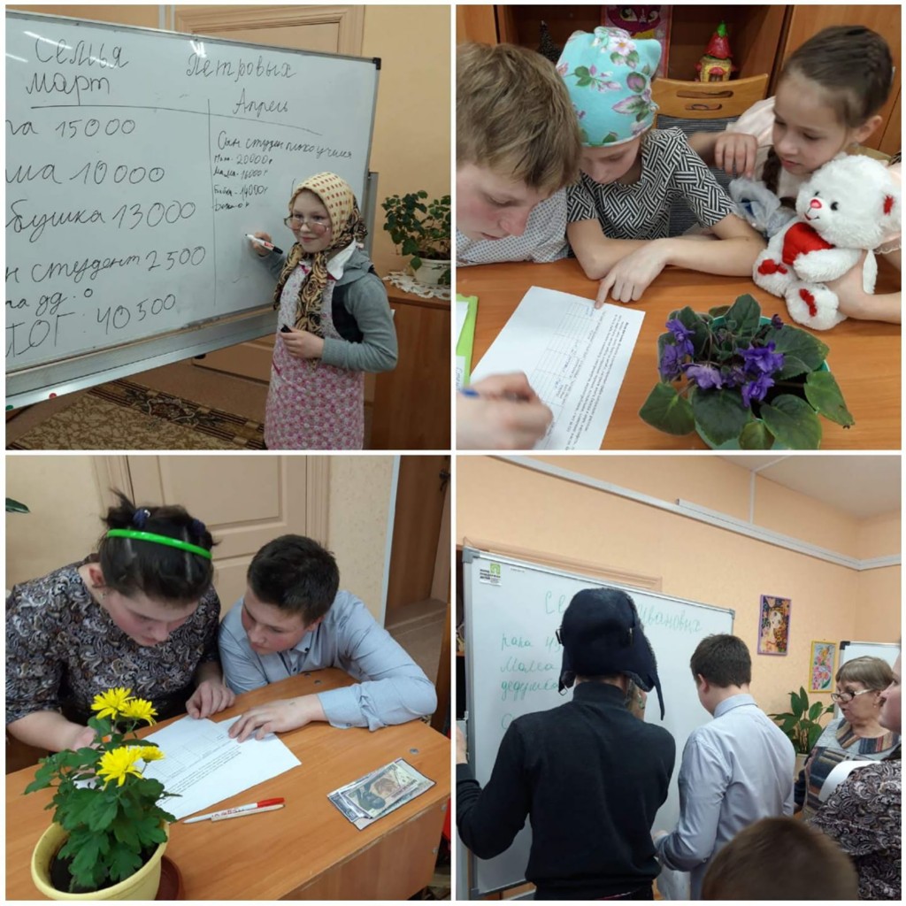 Урок по финансовой грамотности в форме игры провела социальный педагог Людмила Никушина. Участники мероприятия были поделены на две условные семьи. Игра включала:ознакомление с важными статьями семейного бюджета, планирование и распределение доходов и расходов, подсчёт денежных средств.